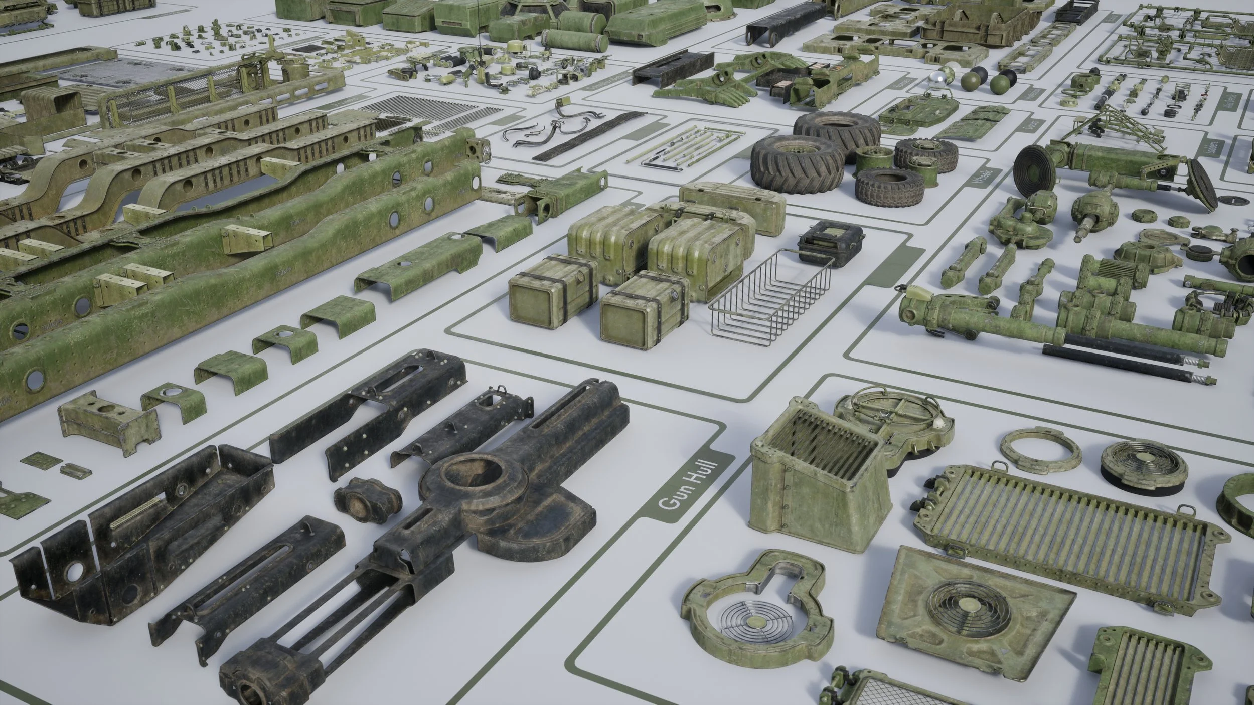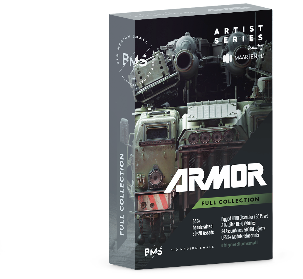 Designed by Maarten, ARMOR is a comprehensive kit built for harsh environments. This collection includes hundreds of high-detail mechanical parts, pre-built assemblies, and fully textured vehicle components—ideal for constructing anything from rugged transports to heavily armored combat machines. Whether you're customizing the included vehicles or kitbashing your own designs, you'll have the tools to create a cohesive military fleet.