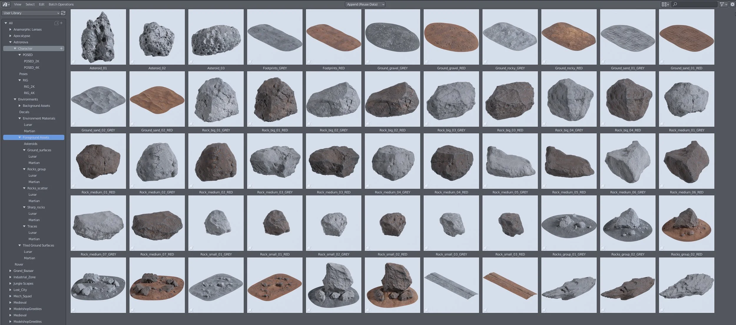 This bundle includes 130+ items: A Fully Rigged HERO astronaut (Provided with 30 Preset Poses and 8 color variations), 80 Unique Assets which are massive Cliffs, Rocks, Craters, Asteroids, Scatter Stones, Lunar and Martian color schemes, 10 UDIM-Supported assets, 12 Tiled Textures with displacements, 12 Tiled Geometry-based surfaces, and 2 Footprint Decals, HERO Rover Companion, UE 5.1 native project files. C4D native files with Octane Render optimization. Formats: Blend 3.2+ only, OBJ, FBX, C4D, Unreal Project 5.5+