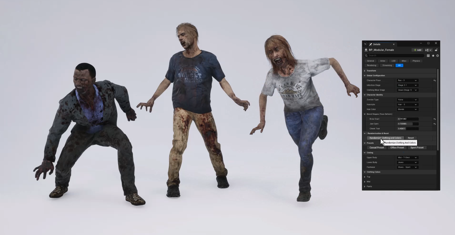 This Bundle includes 300+ items: IK Rigged CROWD Male and Female Characters (Provided with 47 Preset Poses), 200 Designed Posed Characters, 9 Large Groups of Posed Characters, 3 Stages of Infection, a Character composed of 25 Modular Components, Multiple Color schemes for clothes, 10 Highly Detailed Heads, Blender Asset Browser, UE5 Native Project files, UE5 Modular Blueprint. Formats: Blend 3.6+ only, OBJ, FBX, Unreal Project 5.5+